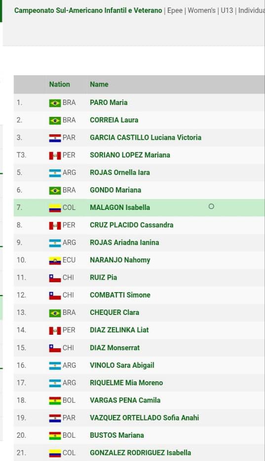 Observaciones: 1ra Competencia Internacional de la deportista Isabella Malagón Campos